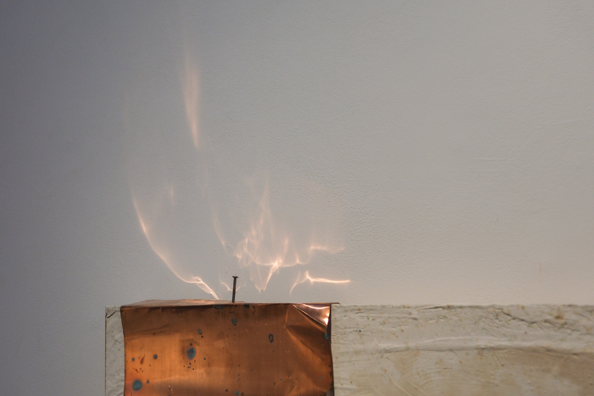 Timber, plywood, AC100 jesmonite, Calcium chloride (salt), copper sheet, copper powder, steel, vinegar, ammonium, nails, room conditions, and environmental variables.